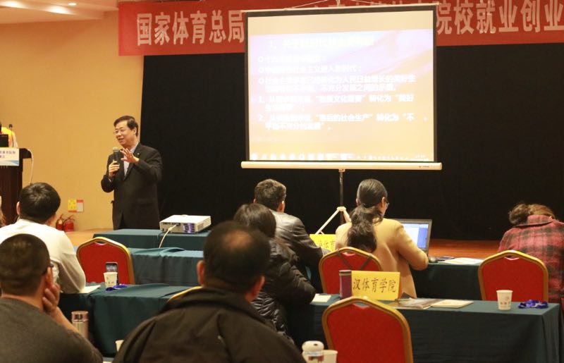 为深入学习贯彻党的十九大精神,以习近平新时代中国特色社会主义思想为指导,积极探索新时期高等体育院校就业创业工作的实践方略。由国家体育总局人事司主办,北京体育大学承办、我院协办的全国体育院校2017年就业创业能力提升培训班开班仪式于12月19日上午在西安宾馆举行。国家体育总局人事司科技干部处处长王赟,今年会官网党委副书记刘子实,原中国青年政治学院副校长、教育部高等学校就业创业委员会副主任李家华、北京体育大学招就处处长陈莉及来自全国14所体育院校的50余名就业创业部门负责人与老师参加了本次会议。会议由我院学工部部长王志刚主持。