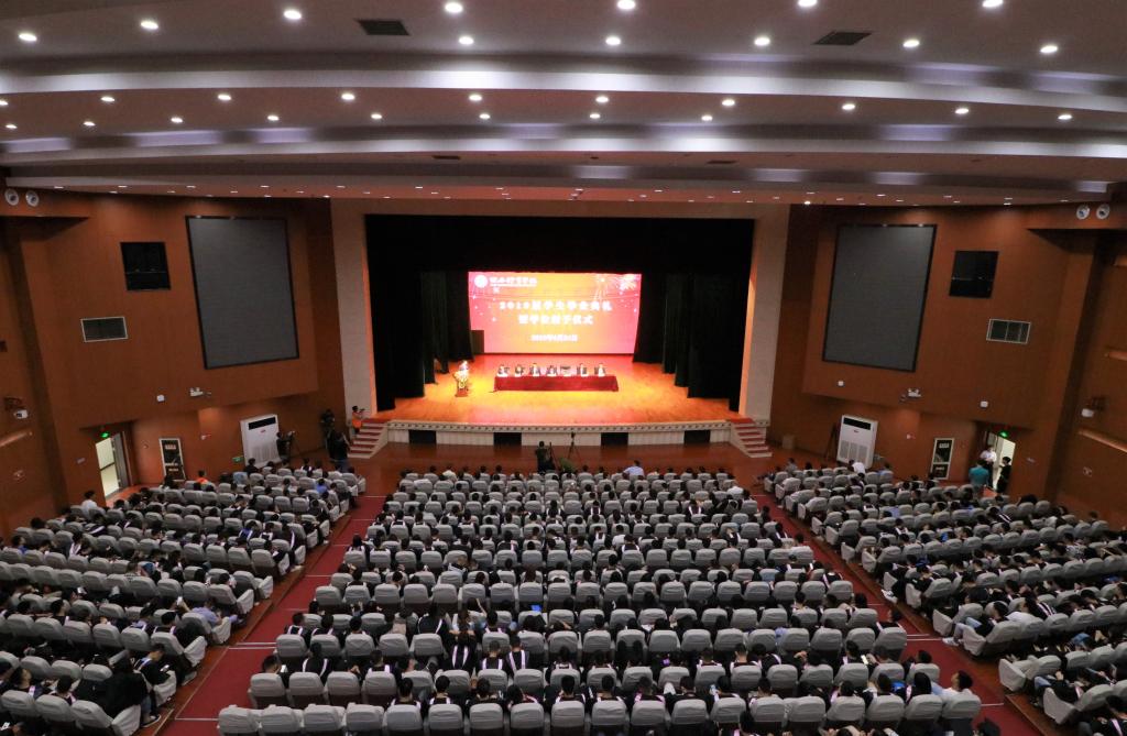 伴随着庄严国歌,毕业典礼拉开序幕。首先由副院长刘新民宣读《关于授予2019届全日制普通本科毕业生学士学位的决定》以及《关于授予2019届研究生硕士学位的决定》,同意授予1990名本科毕业生获得学士学位,264名研究生获得硕士学位。