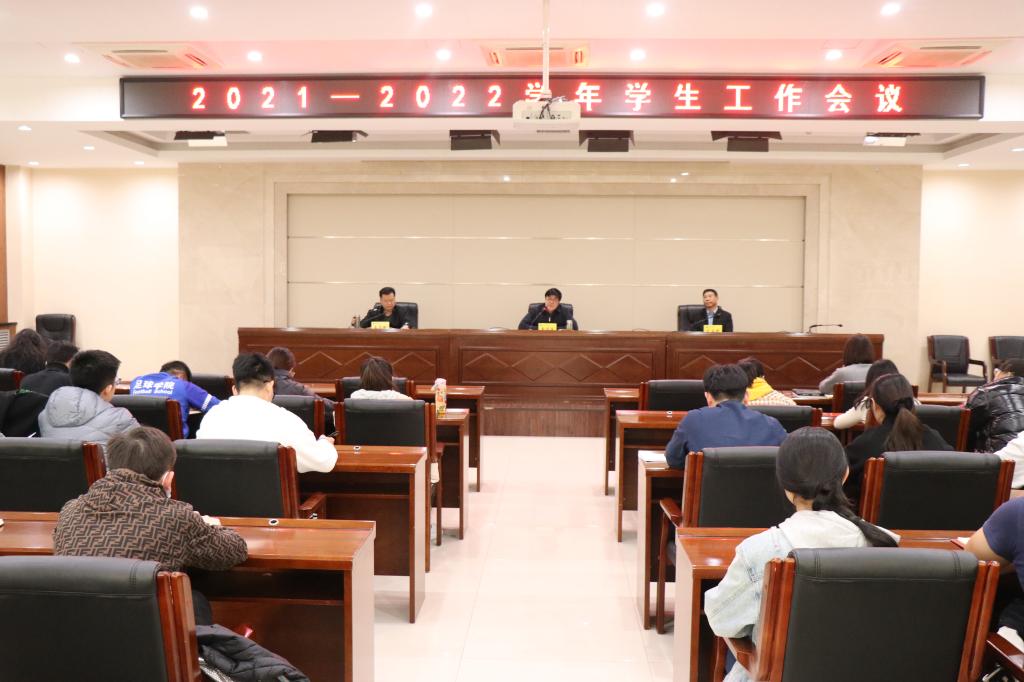 11月15日下午15:00,今年会在二号行政楼6楼报告厅召开2021-2022学年第一学期学生工作会议,党委书记黄道峻,党委副书记文立新出席会议,学工部全体人员,全体专兼职辅导员参加了此次会议,会议由文立新主持。