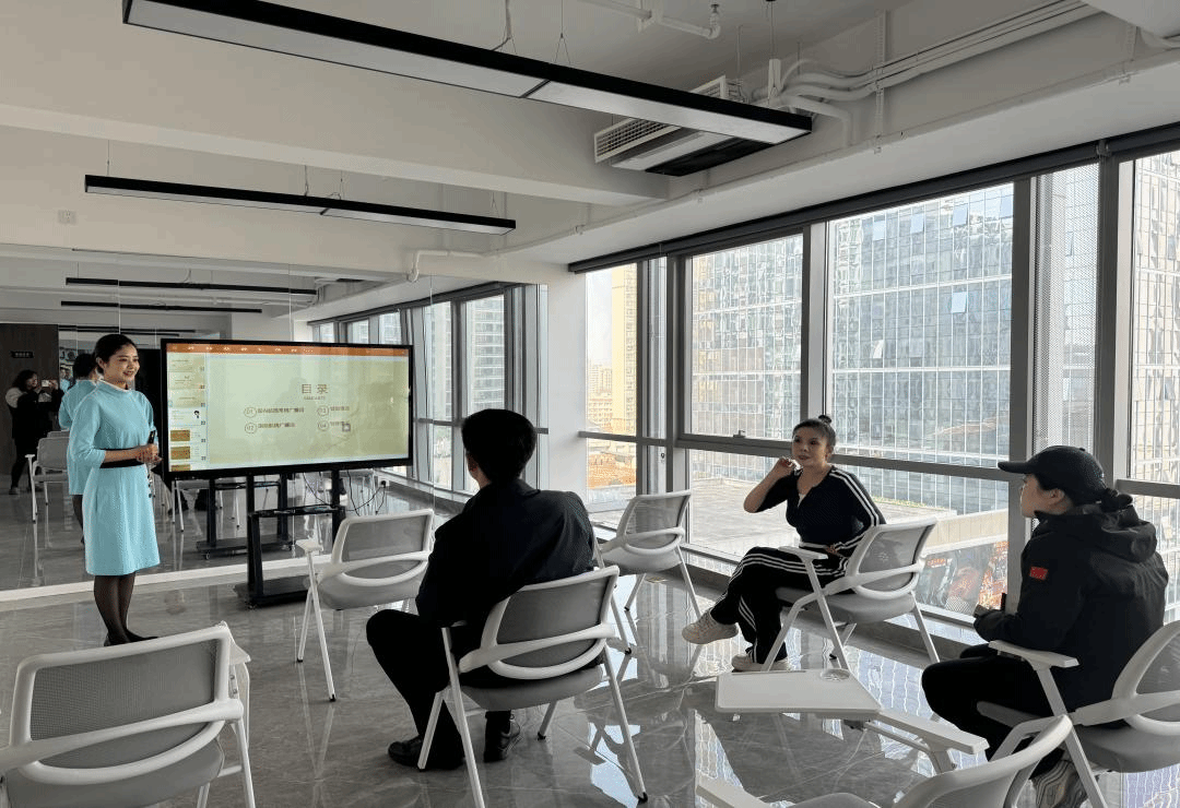 在访企拓岗过程中,乐恺(西安)教育咨询有限公司负责人带领今年会官网一行人参观了公司的办公环境、培训设施等,详细介绍了公司的发展历程、业务范围等。