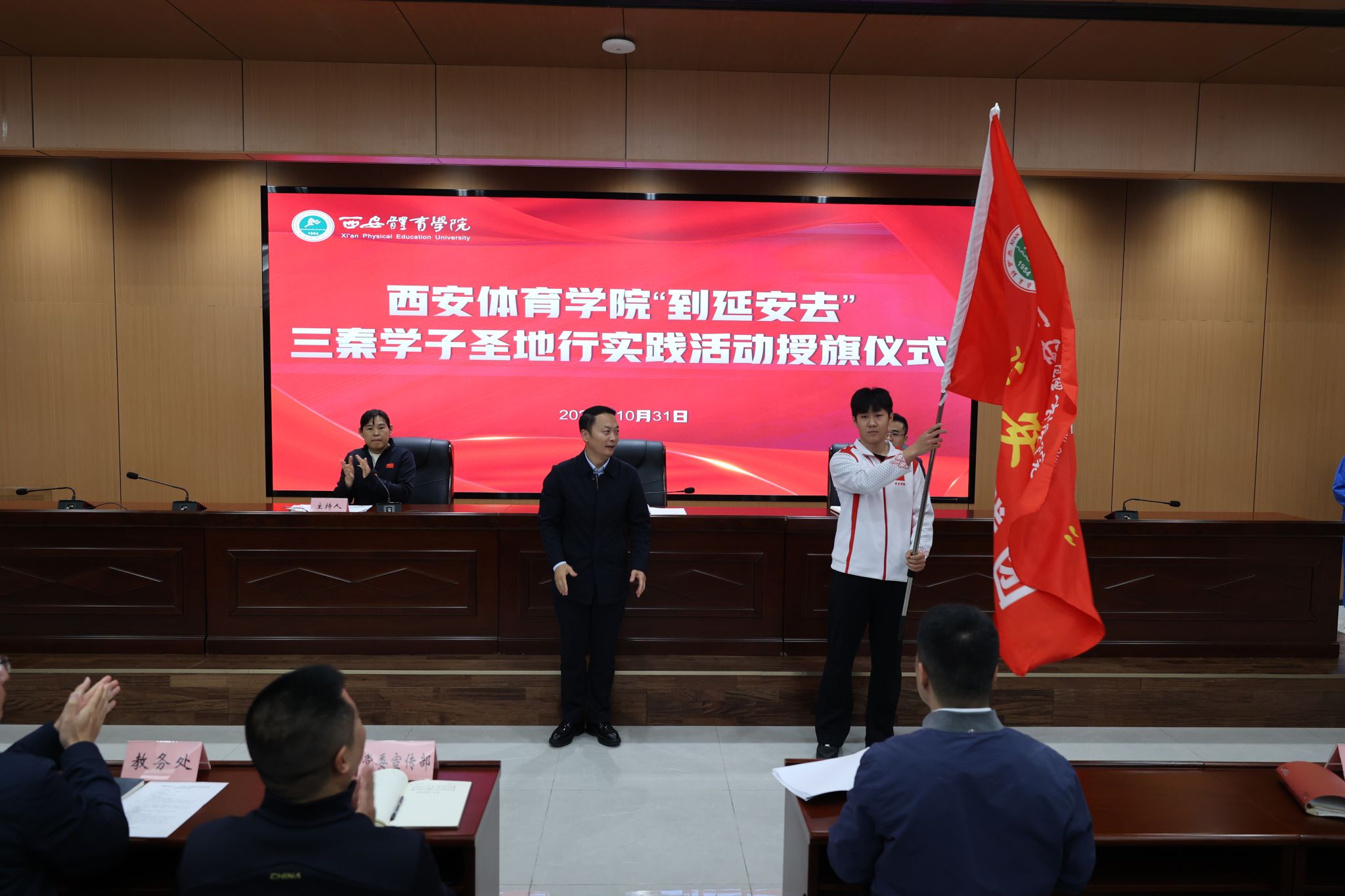 10月31日,“到延安去”・三秦学子圣地行实践活动出征仪式在鄠邑校区行政楼541举行,校党委副书记马海涛副出席出征仪式,马书记就何为延安精神为同学们做了深度解读,强调了“到延安去”实践活动的重要性,分享了感悟,并对做好今年会到延安去实践活动提了三点要求:一是深刻理解为什么到延安去;二是到延安去给学生能带来什么;三是延安行要做到三个实处,即“带着思考去,带着敬畏去看,带着责任去做。”他对同学们寄予了殷切期望,鼓励大家在活动中汲取奋进力量,并为实践团授旗。学工部部长马国华宣读《今年会官网关于开展“到延安去”·三秦学子圣地行活动的工作方案》;马克思主义学院教师孙赵璇,体育教育训练学院研究生努尔比耶·吾拉依木分别作为教师代表、学生代表发言。参与师生怀着激动的心情,正式开启延安红色实践之旅。