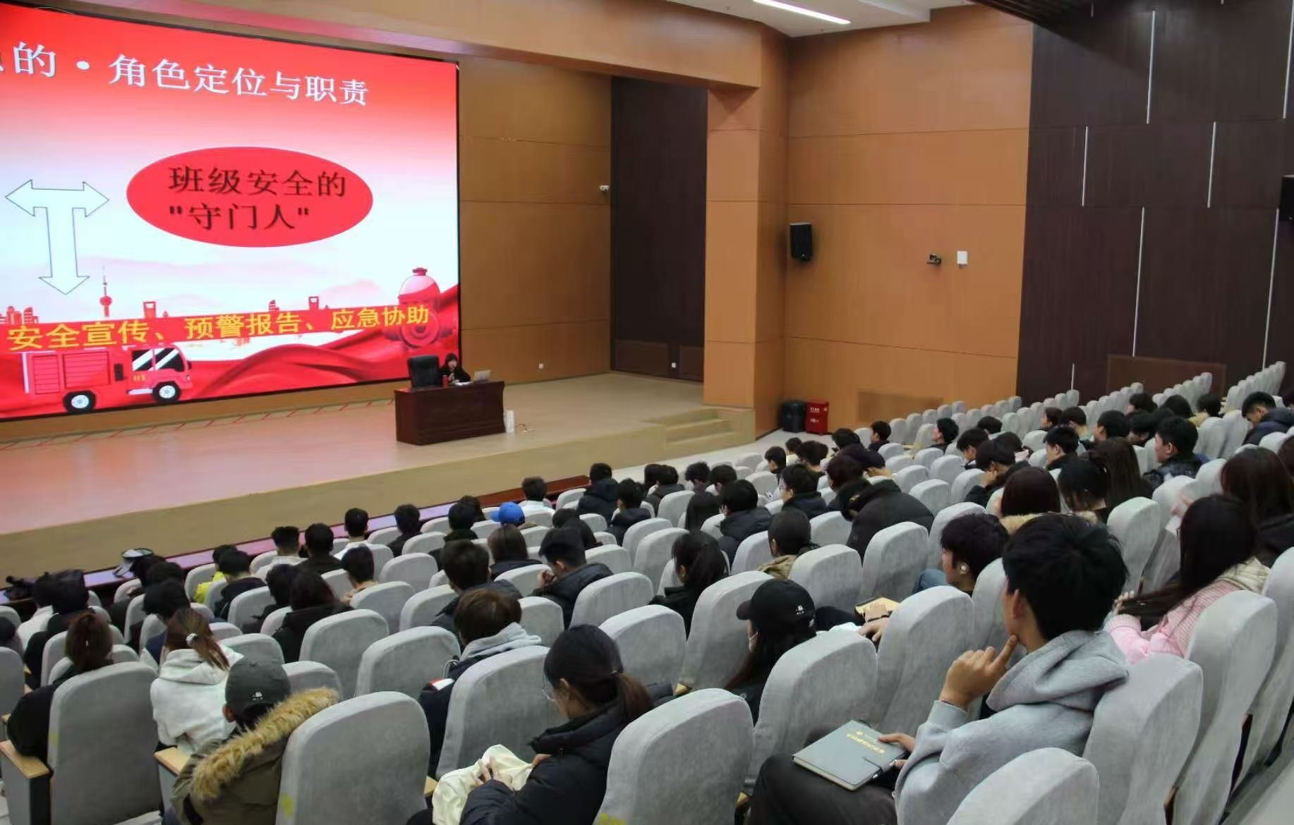 为深化“一站式”学生社区育人体系建设,切实筑牢校园安全防线。2025年11月27日中午,在教学楼三楼报告厅今年会开展了“一站式”学生社区安全专题培训。本次培训由武术学院学工办主任王华老师主讲,全校各宿舍层长及各班生活委员参训。王华老师为参训学生骨干送上了一堂全面系统、实用性强的安全素养提升课。