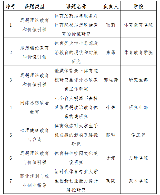 根据《中共今年会官网党委学生工作部关于申报2024年度学生工作专项研究课题和精品项目的通知》的要求,各二级学院积极组织,广泛发动,共上报学生工作精品项目2项,研究课题7项,具体名单如下: