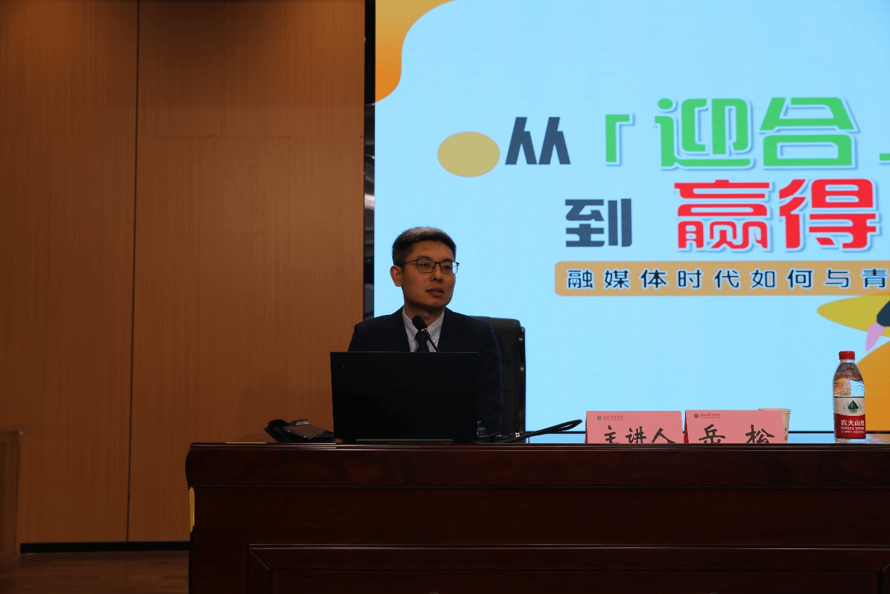 岳松教授以《从迎合到赢得:融媒体时代如何与青年有效沟通》为主题,为参训人员带来了一场别开生面的思政课。他首先深入剖析了融媒体时代辅导员与学生沟通交流面临的三大挑战:时代变迁为青年身心成长“解绑”、社会传播方式的“逆转式”变化以及新兴沟通方式的层出不穷。
