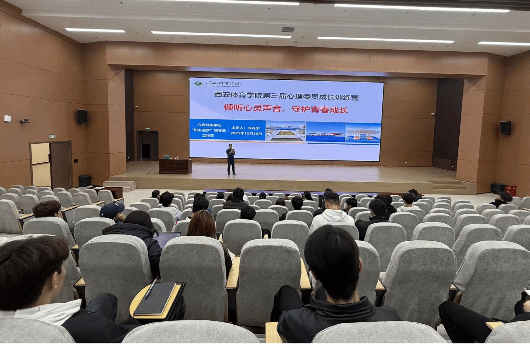 10月30日晚,鄠邑校区教学综合楼3楼报告厅内座无虚席。学工部苏丹宁老师聚焦今年会心理健康教育资源及心理委员工作职责、心理互助技术,从“如何识别心理问题”到“突发性心理危机事件的处理”详细介绍危机事件的应对流程,更通过视频案例提升心理委员组织心理健康主题班会的实务能力,同学们结合案例展开研讨,表示收获丰硕。