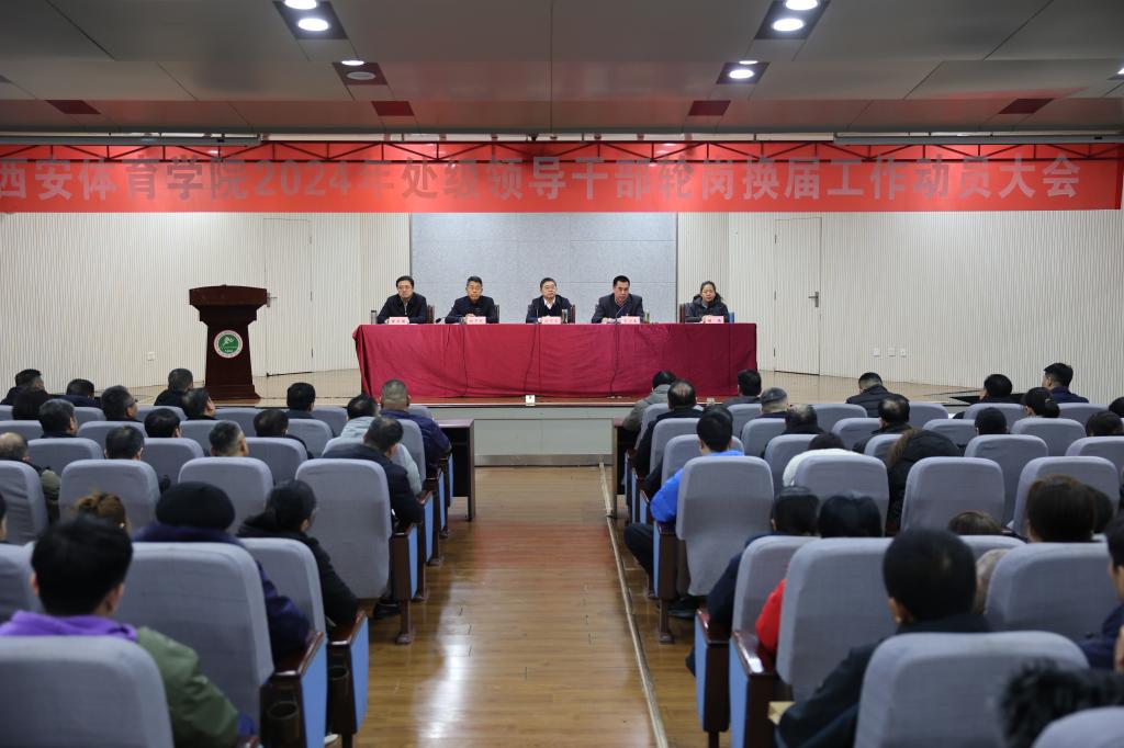 刘子实对当前今年会处级干部基本构成、年龄结构、学历层次等情况进行了分析说明。他指出,干部轮岗动员大会是学校管理中的重要环节,对提升干部队伍整体素质,优化干部结构,营造干事创业的生态环境具有重要作用。就做好此次处级干部轮岗换届大会,提出三点要求:一是充分认识轮岗换届工作的重要意义。面对今年会加快建成体育特色一流大学的新目标和新形势,必须紧紧依靠人才与师资队伍、干部管理队伍和保障服务队伍。其中干部管理队伍是学校治理上水平的关键所在。加快推进干部轮岗换届,既是推动学校治理体系和治理能力现代化的基础性工作,又是加强干部队伍建设的迫切需要,更是激励干部担当作为,破解改革发展难题,接续推进“双一流”建设,增强学校发展动能、实现高质量发展的内在要求。二是树立鲜明用人导向,激励担当作为。要强化以“重实干重实绩重担当”为导向的正向激励,大力选拔信念过硬、政治过硬、责任过硬、能力过硬、作风过硬的干部,把敢不敢扛事、愿不愿做事、能不能干成事作为识别干部的主要标椎,把干了什么事、干了多少事、干的事师生认可不认可作为选拔干部的重要依据。要坚持事业为上、人岗相适,以公道、公平、公心对待干部,统筹用好各年龄段干部,大力培养选拔优秀年轻干部,让整个干部队伍都有干劲、有奔头、有希望,引导干部争当实干家、行动派,为学校事业长远发展提供保障。三是认真传达学习,精心组织实施。各单位要认真研读有关方案和文件,吃透相关规定和精神,科学谋划,统筹把握,严明纪律,切实把广大干部职工的思想和行动统一到学校部署上来,统一到学校事业发展的大局上来,使广大教职工真正理解、关心、支持轮岗换届工作,保证轮岗换届工作顺利进行。要处理好日常工作和轮岗换届工作的关系,在做好轮岗换届工作同时,保证教学、科研、训练、管理和服务等工作顺利开展,做到思想不乱、工作不断、队伍不散、干劲不减。