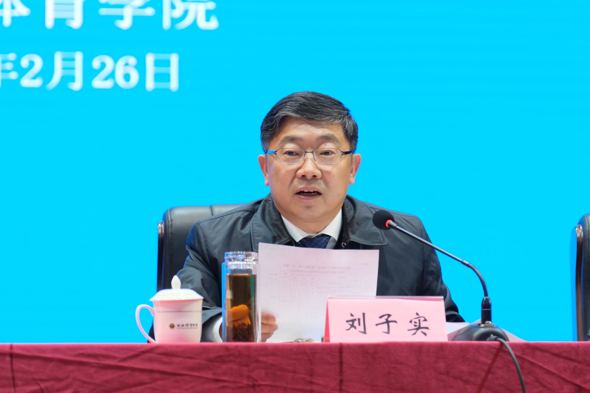 刘子实在讲话中指出,今年是学校“十四五”发展规划、“三年行动计划”的收官和“十五五”规划谋篇布局之年,也是博士点申报、“双一流”评价的战略窗口和数据核准节点和本科教育教学审核评估整改落实之年。一是把握形势,鼓足干劲。要提高站位,积极践行习近平总书记重要嘱托,统筹推进教育科技人才一体改革,主动对标国家战略和时代需求,将学校发展置于国家发展全局中定位和考量,在认清形势中把握责任方向、在服务国家战略中抓住机遇、在顺应大势中凝聚思想共识。党委将今年定位“对标落实改革攻坚年”,就是要提高组织力以“对标对表改革攻坚”贯穿全年的工作主线,聚焦重点领域和关键办学指标主动对标落实。要拿出“脱几层皮、掉几斤肉”的狠劲,以“人一之、我十之,人十之、我百之”的付出,以超常规手段和力度,冲击博士单位和博士点申报关键任务,实现跨越式发展的攻坚冲刺。二是突出重点、高位运行。要做好总结收官和开篇谋划,高标准、严要求对照任务清单,对标落实各项重大数据,确保“十四五”规划和“三年行动计划”圆满收官。围绕体育强国建设、强省建设、《教育强国建设规划纲要(2024—2035年)》部署要求和“15229”发展路径,瞄准制约学校高质量发展的堵点卡点问题和体制机制弊端,加强调查研究与顶层设计,紧盯关键办学指标,强化前瞻性谋划布局,科学编制“十五五”规划;要不断优化干部人才干事创业的良好环境,创新体制机制,使办学资源、荣誉待遇向教科训、人才、基层倾斜、向创新倾斜、向担当作为者倾斜。坚持实施人才强校战略,不断优化人才结构,引进关键人才,用好现有人才,包容创新人才。用好“平台+带头人+团队+成果”的四循环人才成长模式,及时解决瓶颈难题,及时兑现各项待遇和奖励,促进多出成果、早出成果、出大成果。营造潜心事业、自由宽松的人才发展生态,激发人才创新活力,赋予用人单位更大自主权,灵活调配人才、合理配置资源、高效完成任务。有计划地开展人才培养、干部培训,全面提升履职能力与水平;要积极稳妥推进全面深化改革,坚持“以人为本、统筹兼顾、内涵提质、对标落实”,坚持“发力要准、步子要稳,师生拥护、效果要好”的导向,切实做到“直面矛盾问题不回避,铲除顽瘴痼疾不含糊,应对风险挑战不退缩”,以钉钉子精神谋划和推动重大改革任务落地见效。三是党建引领,做好保障。要切实加强党对学校工作的领导,坚持不懈用习近平新时代中国特色社会主义思想铸魂育人,深刻把握教育的“三大属性”和“六大特质”,积极构建全面系统的思政工作体系,实施新时代立德树人工程,不断提升党建质效,强化政治建设、组织建设和干部队伍建设,锻造高素质领导班子和干部队伍。提高党委班子驾驭全局、化解风险的能力水平,夯实党管治党、办学治校的主体责任;要以改革的精神和严的标准推进全面从严治党工作,建立健全“五大体系”,贯彻落实“三重一大”决策制度和学校重大决策的研判机制、落实机制、问责机制,探索推动“党建引领+高质量发展”3131创新模式,把党建工作全面融入教育教学、科学研究、竞赛训练、服务社会等工作中,实现党建与业务工作的同频共振、双轮驱动。进一步增强基层组织的政治功能和组织功能,以基层党建引领基层治理,推动治理体系和治理能力现代化。巩固和拓展党纪学习教育成效,加强纪律作风建设,加大对群众身边不正之风和腐败问题整治力度,营造风清气正的校园政治生态;要切实强化校园和谐稳定,统筹做好意识形态安全、消防安全、食品卫生安全、宿舍安全、校园周边安全等工作,切实提高校园安全治理现代化水平。加快推进民生工程,继续开展“我为师生办实事”活动,实施教职工住房、信息化建设等保民生、保教学重点工程项目,打造更加优质高效的服务保障能力。进一步弘扬校风、校训,强化校风、作风、教风、学风建设,营造诚厚俭朴、积极向上的今年会大学文化。努力建设和谐平安校园,以高水平安全促进和保障高质量发展。