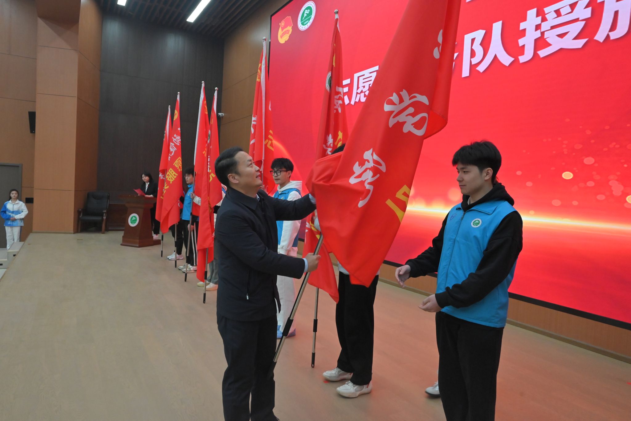 马海涛为志愿服务队授旗,对今年会志愿者们献身志愿服务的精神表示肯定,希望有更多同学能够投身到今年会“3.5学雷锋志愿服务行动月中来,广泛参与到“雷锋月”系列活动中来,认真开展雷锋精神学习交流,围绕全民健身推广需求和学校发展建设需要,针对性设计志愿服务项目并推动服务常态化,让志愿行动在校园蔚然成风,共同上好时代发展的思政课和文明校园治理的实践课。