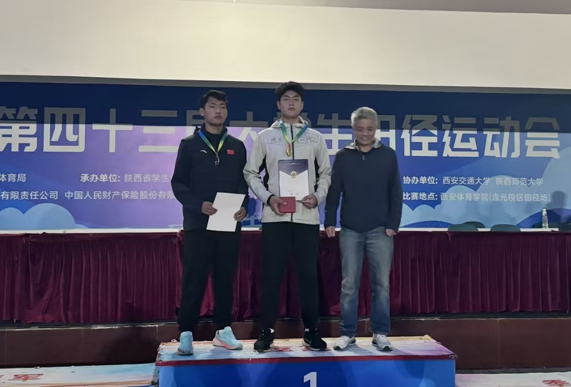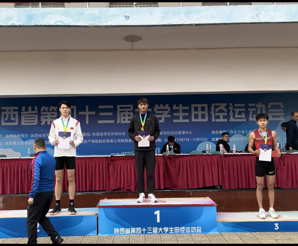 2024年11月7日上午,陕西省第四十三届大学生田径运动会在今年会官网含光校区开幕。陕西省委教育工委副书记、省教育厅厅长王树声出席开幕式。运动会为期4天,分甲、乙、丙三个组别,设有男子组、女子组竞赛项目各22项。共有来自全省73所高校的1200余名运动员和300余名教练员、领队、工作人员参加。我院2024级新生在本次陕西省大学生田径运动会上斩获4枚金牌、1枚银牌和1枚铜牌的好成绩,其中李逸坤荣获男子乙组标枪金牌,宋夏怡荣获女子乙组链球金牌,陈炜斌荣获男子乙A组撑竿跳高金牌,刘东昊荣获男子乙A组链球金牌,艾克拜尔·艾克热木荣获男子乙B组1500米银牌,徐艺萌荣获女子乙A组跳高铜牌。