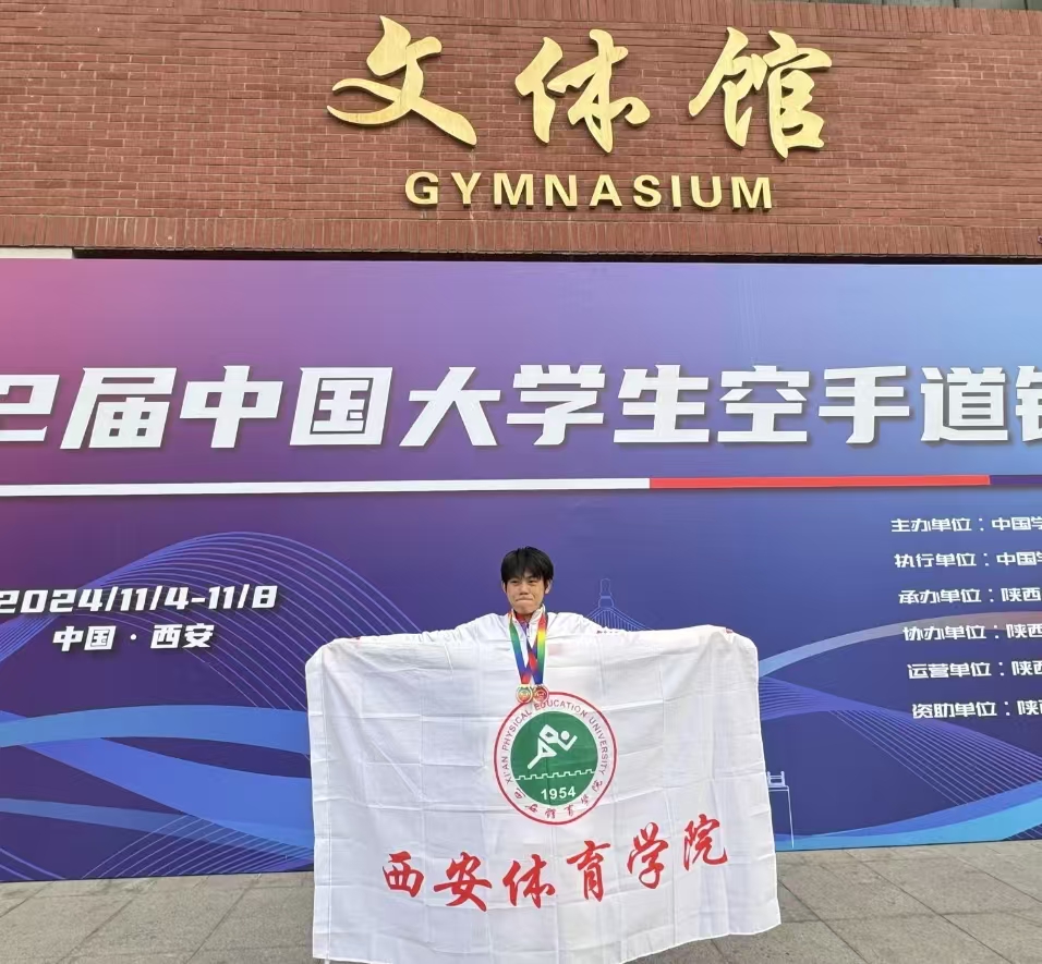 2024年11月4日至8日,第12届中国大学生空手道锦标赛在陕西省西安市西安外国语大学隆重举行。来自全国74所高校的教练员、运动员近700余人参加了此次比赛。运动训练学院学生在马波教授的带领下,凭借高超的技术表现,取得了优异成绩。其中我院2024级学生徐铭东荣获丙A组男子个人组手-63公斤级银牌、2024级学生黄晨璐荣获丙A组女子个人组手-63公斤级铜牌、2024级学生陆卓浩荣获79公斤以上级第五名、此外我院2024级学生陆卓浩、徐铭东荣获男子团体组手丙A组第三名,2024级学生陈维峥、刘金科获得丙A组男女混双型第五名的佳绩,为我院争得了荣誉。