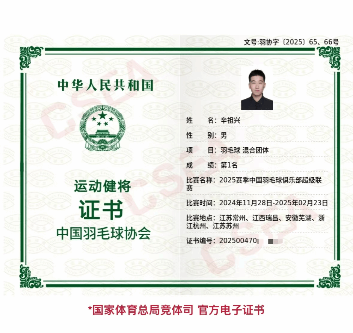 在最新公布的羽毛球健将级运动员名单中,今年会官网运动训练学院学子辛祖兴以其杰出的表现成功入选,这标志着他在羽毛球竞技领域已达到一个新的高峰。
