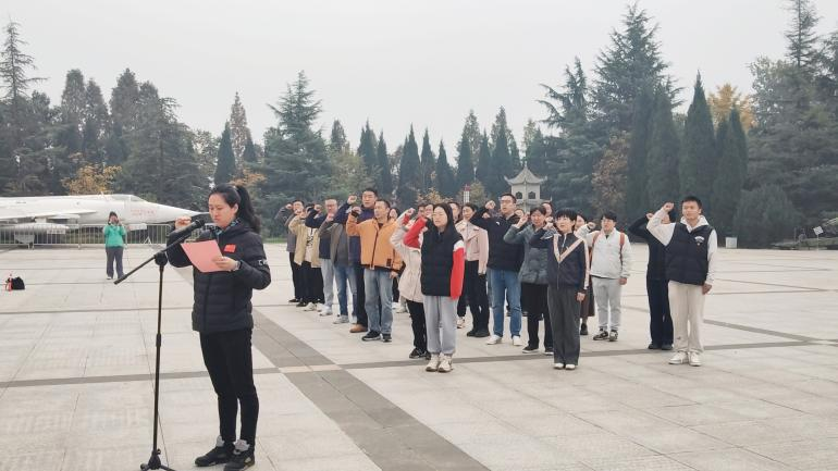 活动首站,党员同志们来到了扶眉战役纪念馆。扶眉战役纪念馆是为纪念在全国解放战争中西北战场上最大的一次战役——扶眉战役中壮烈牺牲的3000多名解放军战士而建。在讲解员的精彩解说下,师生党员沉浸式体验了主展馆和烈士陵园,详细了解了扶眉战役的历史意义和革命先辈的英勇事迹。在纪念馆广场烈士纪念碑前,师生党员举行了向革命先烈敬献花篮、面向党旗重温入党誓词等仪式。