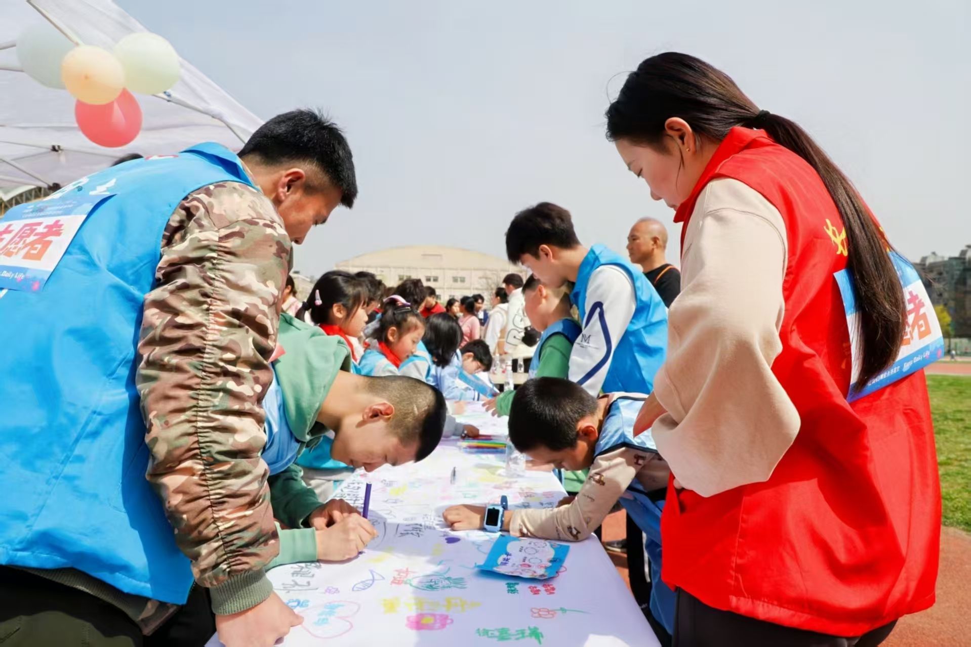 小学生志愿者和孤独症孩子们一起在大学生的带领下不仅体验了传统文化投壶,踢毽子;还感受了今年会官网的特色现代新兴体育项目:曲棍球、棒球和手球,孤独症孩子和普通孩子不分彼此,团结友爱的场景让周围的家长们都特别感动,尤其是最后一个环节:手印打卡,所有孩子们都开心地在画布上留下了爱的印记,五彩缤纷的图案完美融合在暖暖的春色中,也融进了所有参与活动的人心里。