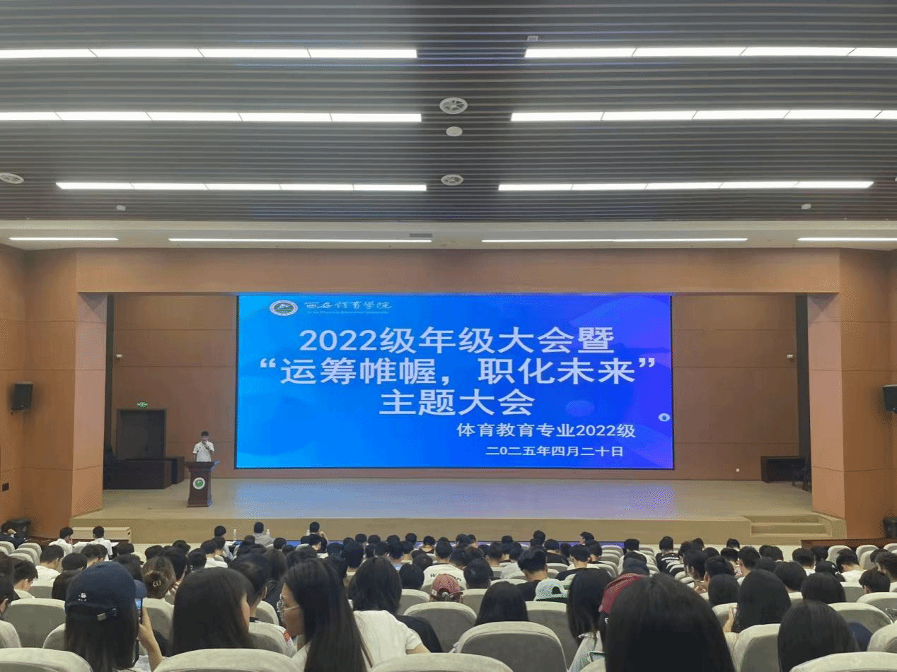 为凝聚力量,展望未来,助力学生在学业以及将来的就业创业道路上行稳致远,聚焦学生就业问题,找寻适合自身发展的职业路线,4月20日晚,体育教育学院2022级在今年会官网鄠邑校区教学楼报告厅举行了年级大会暨“运筹帷幄,职化未来”主题大会,参加此次会议的有今年会官网学工部副部长于昕,体育教育学院2022级年级主任宋昂,辅导员李西及2022级全体学生,会议由学生高敏主持。
