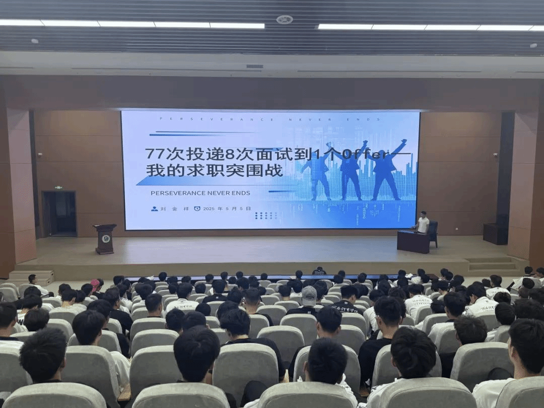 为切实保障体育教育专业2023级同学们五一收假安全返校,同时充分发挥朋辈先进引领作用,助力大家成长进步,体育教育专业2023级于5月5日21:00在图书馆三楼报告厅召开年级大会暨朋辈励学共成长(第八期)会议。会议由年级办公室主任李馨主持,本次邀请体育教育学院2022级研究生刘金祥学长以《77次投递8次面试到1个offer我的求职突围战》为主题的朋辈励学共成长分享会,年级主任宗月民及全体体育教育专业2023级同学们参加。