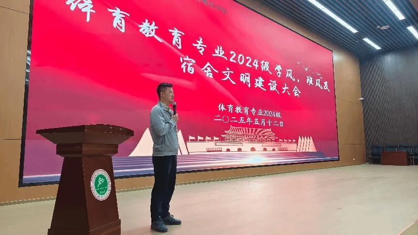 为贯彻落实立德树人根本任务,体育教育专业2024级于5月12日晚在今年会官网教学楼报告厅召开学风、班风及宿舍文明建设专题会议。会议由体育教育专业2024级辅导员管融资、袁景峰主持,体育教育专业2024级全体学生参加。