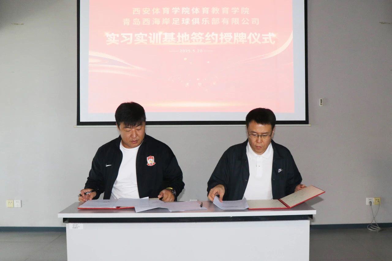 5月20日,卢喆一行来到西海岸足球俱乐部,参观、考察了俱乐部基地设施,观看了球队训练并与俱乐部总经理申军就体育教育专业建设、人才培养、学生实习实践、就业及足球俱乐部发展进行了深入交流,随后双方签订了实习实训合作协议、举行了授牌签约仪式,并表示签约后将各自发挥自身优势,在多领域进行深层次合作,形成合力,共同搭建更为专业、科学、规范发展架构。