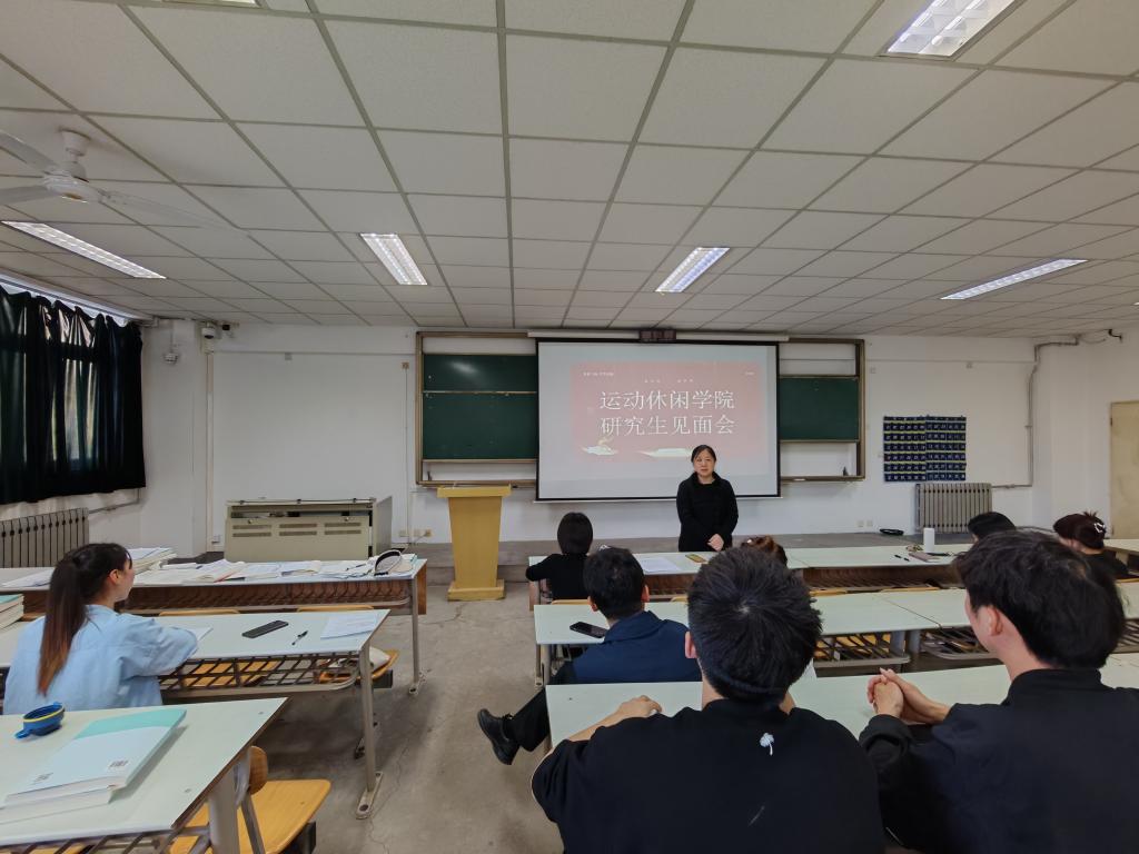 参加本次会议的有运动休闲学院党总支书记郭春玲,教务处副处长、招生办主任李明,运动休闲学院副院长胡婕婷,运动休闲学院学工办主任、团委书记陈楚乔,硕士生导师代表。本次会议由运动休闲学院党政办主任董鹏举主持。