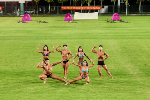 最后登场的是健身健美专项展示单元,由健身健美专项陈吕梦为观众们带来《越自律,越自由》的演讲是讲述了他们在训练过程中面临的重重困难和挑战,他们日积月累坚持不懈的一步步成长,还对专项老师的教导表示衷心的感谢。随后,赵家辉、雷晨伟、王新爽等健身健美专项的同学给我们带来《国潮健身》表演,他们身穿马面裙,手拿利剑将健身和中国传统文化相结合,展现了别样的精彩风景。邹宏斌、周熠、方彤等同学为观众带来了《健美混双》表演,他们通过优美的姿势,充分展现出自己的魁梧身姿和完美的肌肉线条,让观众们震撼不已。最后由赵家辉、黄欣悦、王新爽等同学带来了《力与美》表演,他们的健身模特表演将这个展示单元推向了高潮,赢得了观众的阵阵掌声和呐喊声。