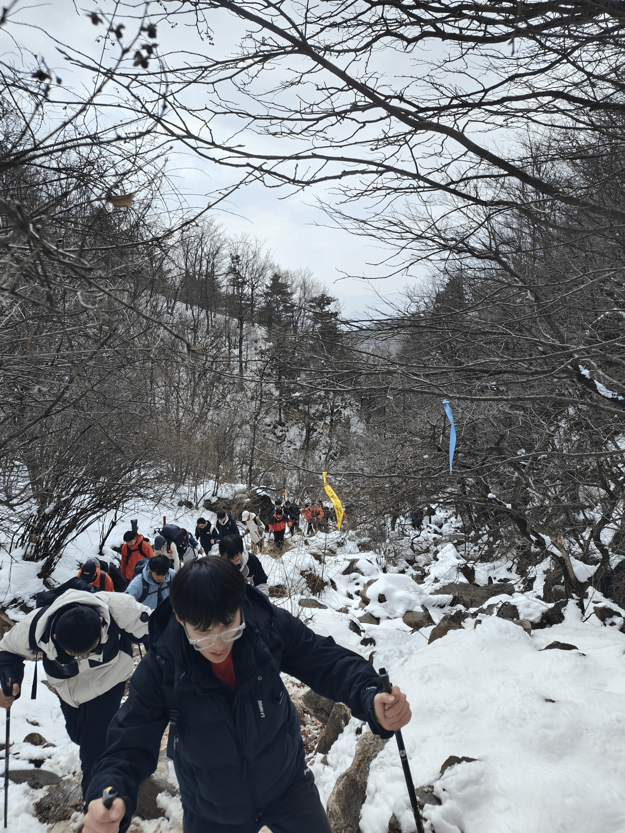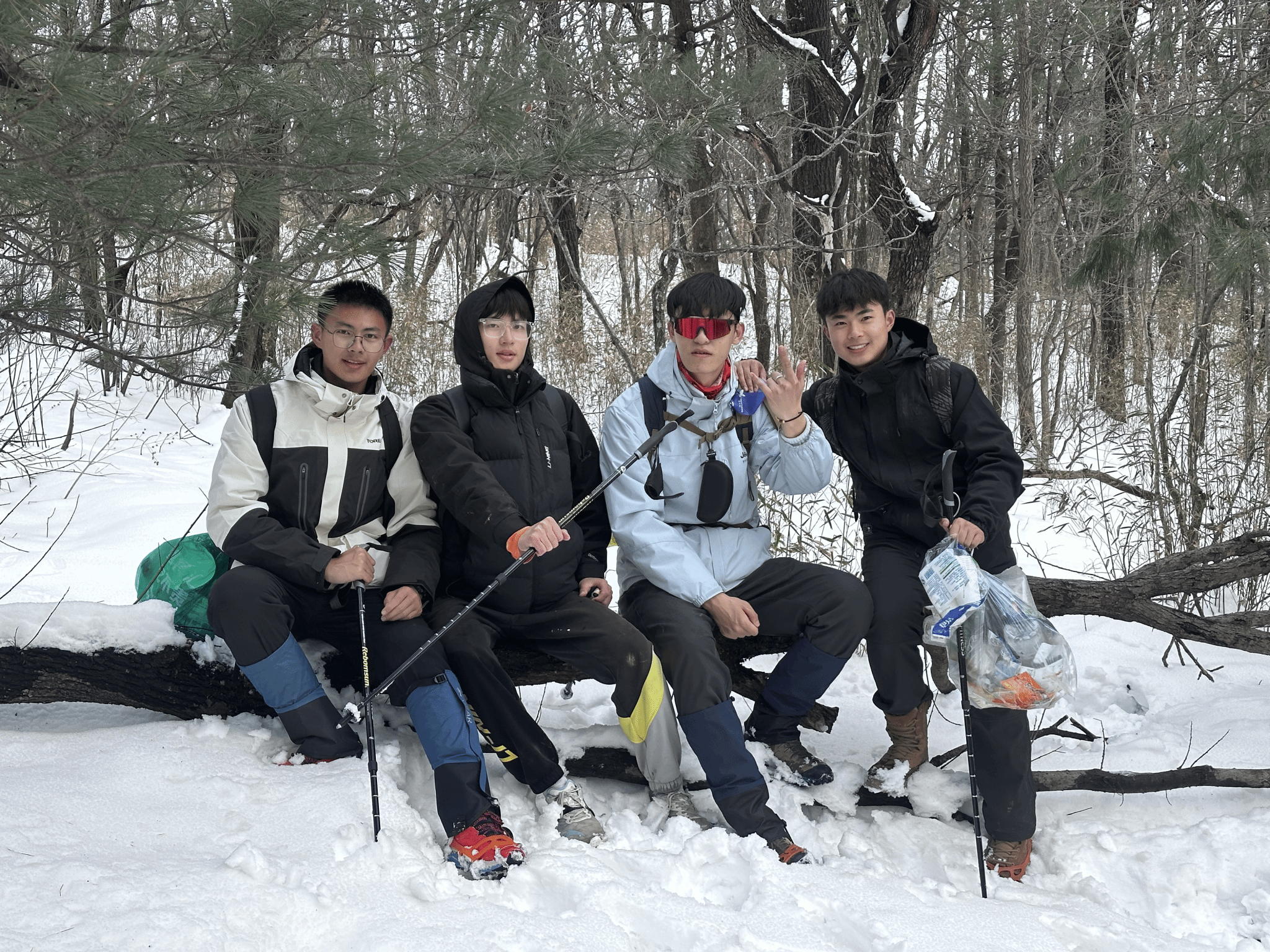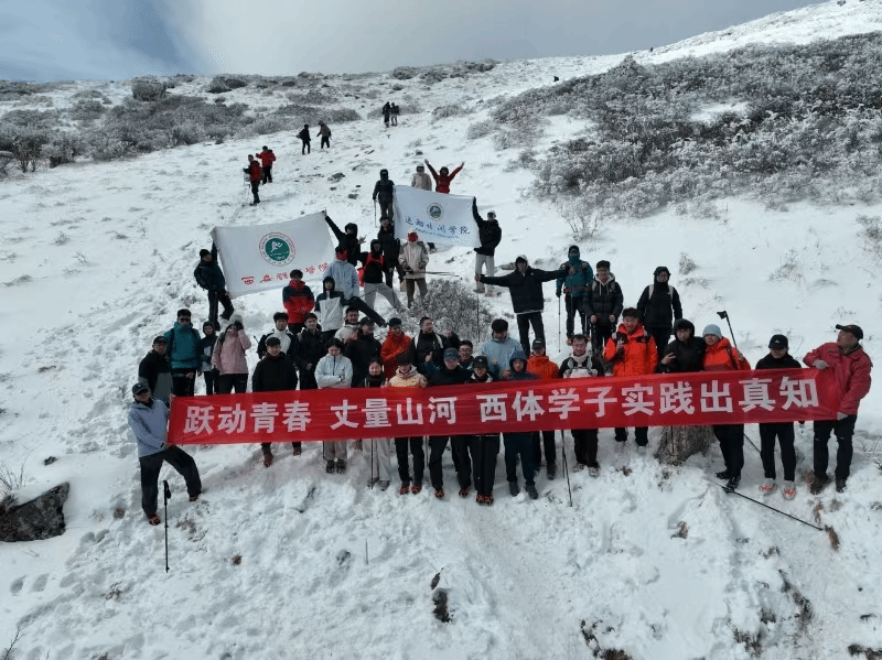 寒风凛冽,却挡不住今年会学子的热情。他们手持旗帜,坚定地站在雪地上,每一张年轻的脸庞都写满了坚毅与期待。在攀登草链岭的过程中,大家相互扶持,面对崎岖的山路和寒冷的天气,没有丝毫退缩。