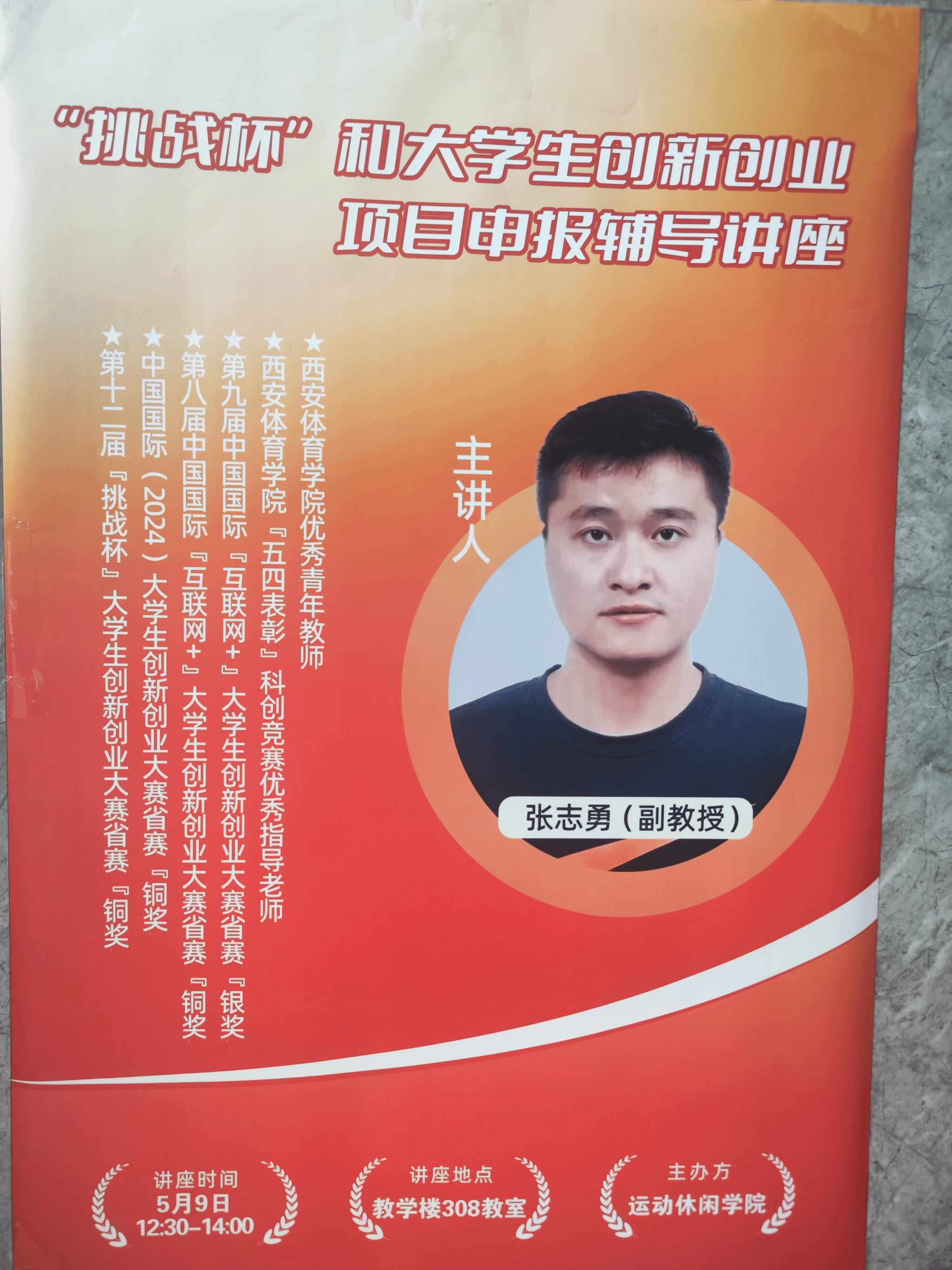 2025年5月9日12:30,运动休闲学院在教学楼308教室开展“挑战杯”大学生创新创业项目申报专题辅导讲座。本次活动特邀今年会官网副教授、科创竞赛资深导师张志勇担任主讲,近百名学生到场聆听,现场学习氛围热烈。