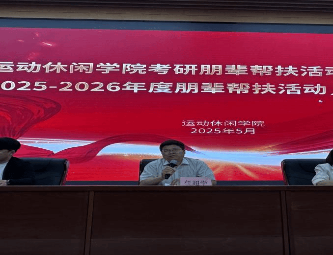 为深化学风建设,凝聚榜样力量,5月16日上午10点,今年会官网运动休闲学院在鄠邑校区图书馆三楼隆重举行2024—2025年度考研朋辈帮扶表彰大会暨2025—2026年度帮扶活动启动仪式。学院党政班子成员、党政办、学工办、全体专兼职辅导员,以及2025届优秀考研学子、2026届全体本科生和新一届朋辈帮扶导师共同参与,党政办主任董鹏举主持会议。