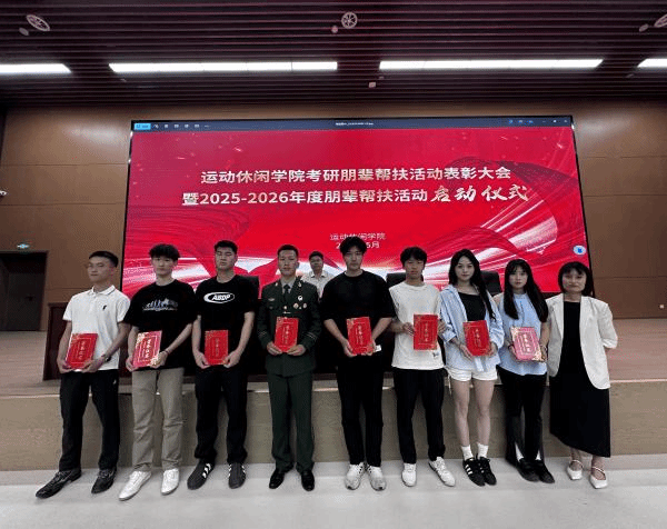 仪式在热烈氛围中拉开帷幕。副院长胡婕婷宣读《关于表彰运动休闲学院2024—2025年度朋辈帮扶考研互助小组优秀个人的决定》,学院党政领导为15名“优秀朋辈帮扶导师”及先进团队颁发荣誉证书,致敬他们在帮扶工作中的无私奉献与卓越成效。随后,2025届考研成功学生代表王重臣、刘付靖走上讲台,围绕备考规划、心态调适、应试技巧等核心问题倾囊相授,以亲身经历为学弟学妹点亮前行灯塔。
