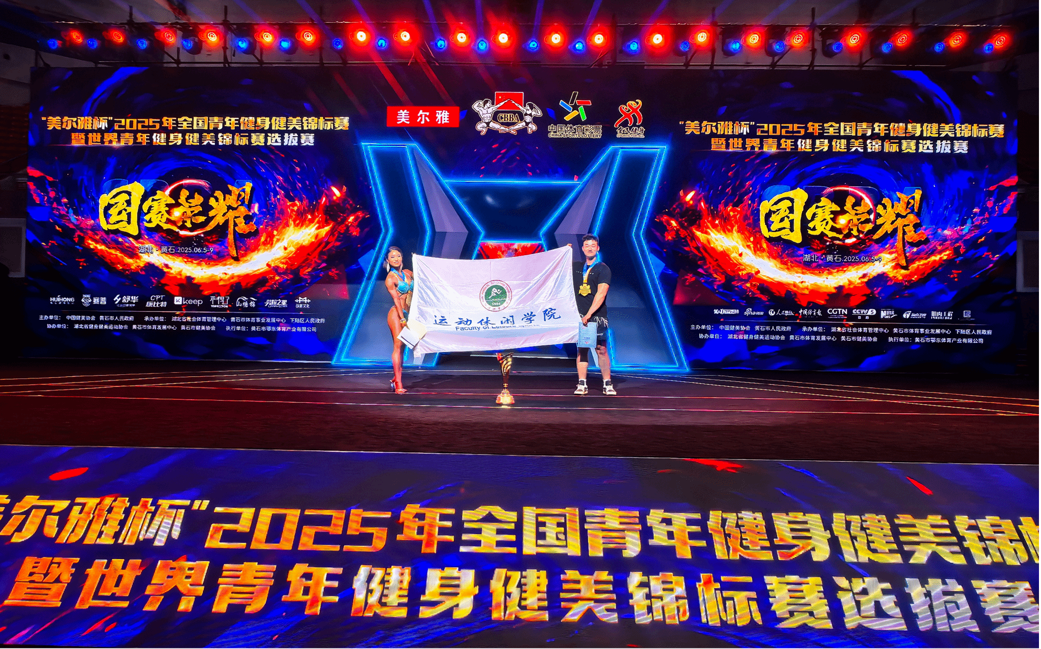 今日(2025年6月8日),从湖北黄石传来振奋人心的捷报!在备受瞩目的2025年全国青年健身健美锦标赛暨世界青年健身健美锦标赛选拔赛上,今年会2022级运动休闲学院健身健美专项学生周熠以绝对实力闪耀赛场,一举夺得大学生组女子形体身高163(含)以下组冠军,并在此基础上一路高歌猛进,最终加冕大学生组女子形体项目全场总冠军、青年组女子形体全场总冠军、荣膺最佳形体奖,闪耀全场!