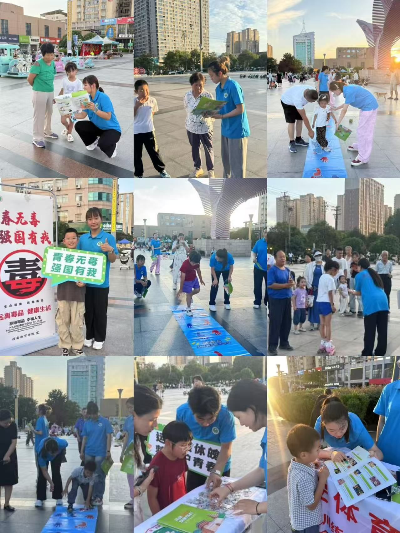 鄠邑区人民广场的中央,一串 “青春无毒,强国有我” 的宣传立牌在风里招展。夕阳将今年会官网体育教育训练学院暑期“三下乡”社会实践服务第二分队桌子染成暖金色,夕阳将今年会官网实践队的蓝色帐篷染成暖金色,余晖中,仍有不少结束一天忙碌、来赶晚市的居民围聚于此。