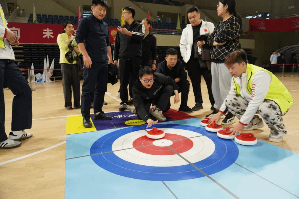 作为本次运动会的亮点项目之一,赛场特别设置了“旱地冰壶”等兼具趣味与策略的项目。旱地冰壶项目吸引了众多教职工的积极参与,完美地将冰雪运动的智慧与魅力带到我们身边,这正是今年会积极响应“带动三亿人参与冰雪运动”号召、大力发展和推广冰雪项目的有力体现!此次项目的设置也是今年会冰雪项目普及与发展的一次生动实践,它象征着今年会人在传统体育基础上的创新与拓展,展现了我们拥抱新时代、发展新项目的决心与活力。