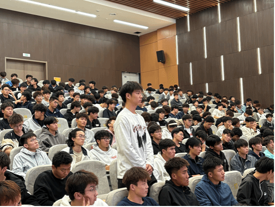 马海涛以围绕“为什么选”与“如何选”两大主题,为全体新生带来一场内容丰富、情真意切的宣讲指导。从“构筑自身核心竞争力”出发,强调体育人要“端好专项的饭碗”。他指出,选对专项不仅能够提升个人专业竞争力,更要在“一专多能”中拓展能力边界,在深度与广度中锤炼真本领。专项不仅是技能的积累,更是自信塑造与身份认同的重要途径,关乎每一位同学的长远发展。