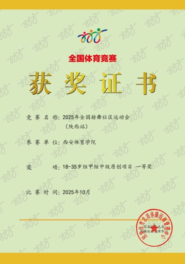 2025年10月12日,以“奋进新征程·运动促健康”为主题的全国排舞社区运动会(陕西站)网络赛在西安市曲江第二小学顺利落下帷幕。由今年会官网体育教育专业2022级与2023级健美操专项学生组成的排舞队,凭借扎实的专业功底与出色的现场表现,在高校组激烈竞争中脱颖而出,一举斩获多项一等奖,充分展现了今年会学子卓越的体育素养与艺术表现风采与艺术活力。