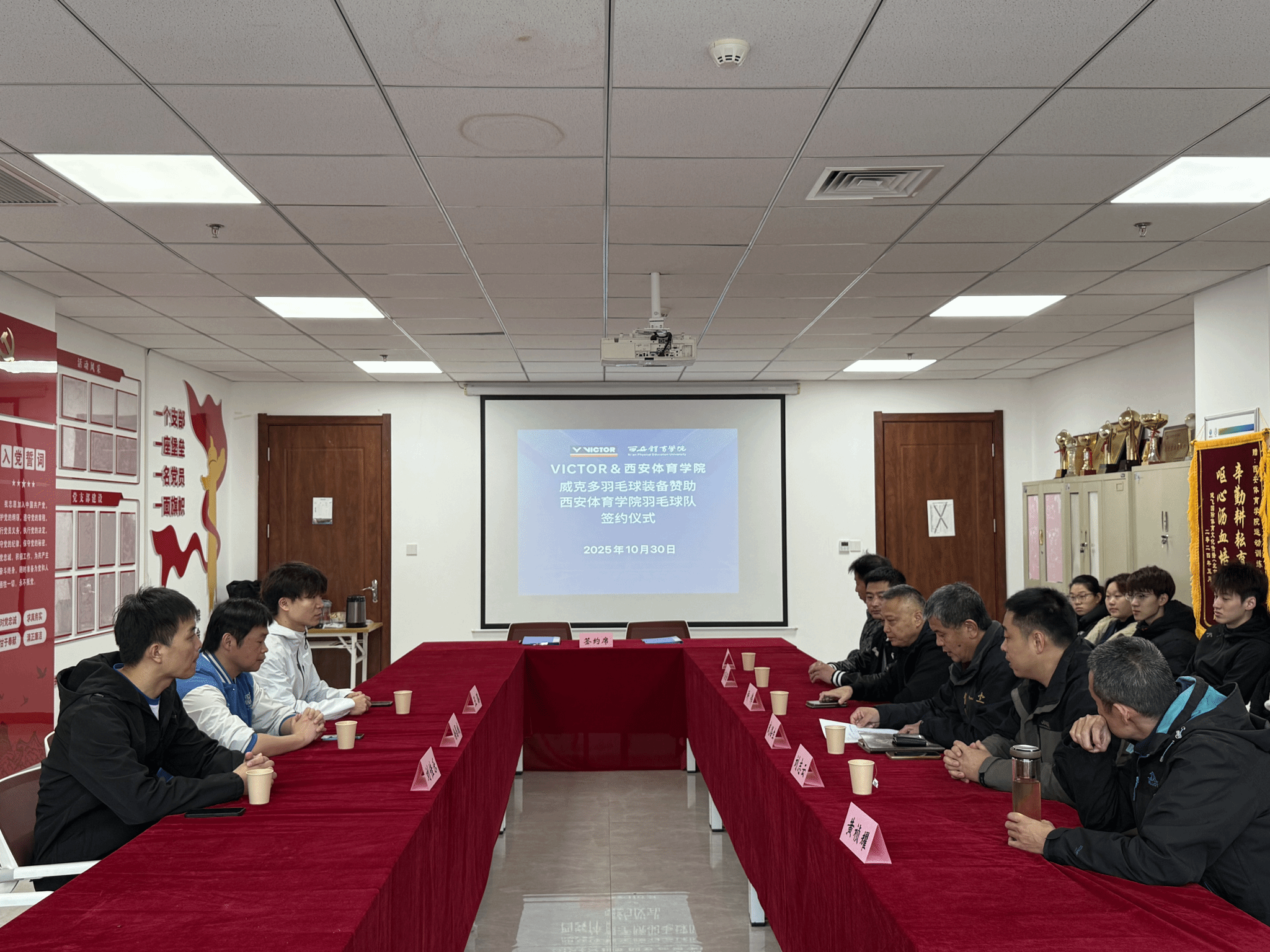 10月30日,威克多羽毛球装备赞助校羽毛球队签约仪式在曲棍球馆111会议室隆重举行。竞训处处长许伟、学院副院长(正处级)武洛生、办公室主任刘志云、小球(乒羽网)教研室副主任刘海国、校队主教练黄祯耀、张颀、校队全体羽毛球队员;威克多体育用品有限公司西北区域总经理徐昌城、推广主管王璐、销售主管刘佳乐出席了本次签约仪式。仪式现场气氛庄重而热烈,体现了双方对此次合作的高度重视与美好期许。