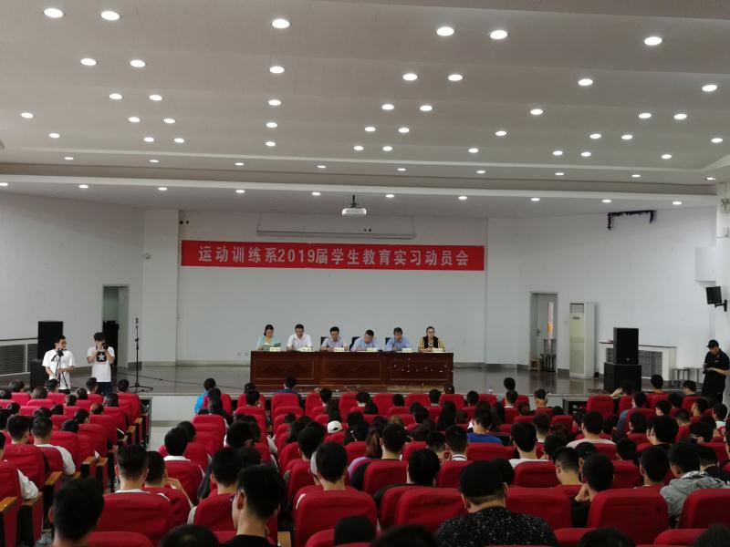 为使同学们进一步了解教育实习的重要性,明确教育实习的计划组织与实施方案,运动训练系2015级于2018年5月9日中午14点20分在教学楼五楼报告厅召开了“运动训练系2019届教育实习动员大会”。运动训练系主任张葆欣、党总支书记张卫国、副主任武洛生、黄谦,办公室主任丁哲、教学秘书郭仲娅及各班实习指导教师出席了本次会议,会议由运动训练系副主任黄谦主持。