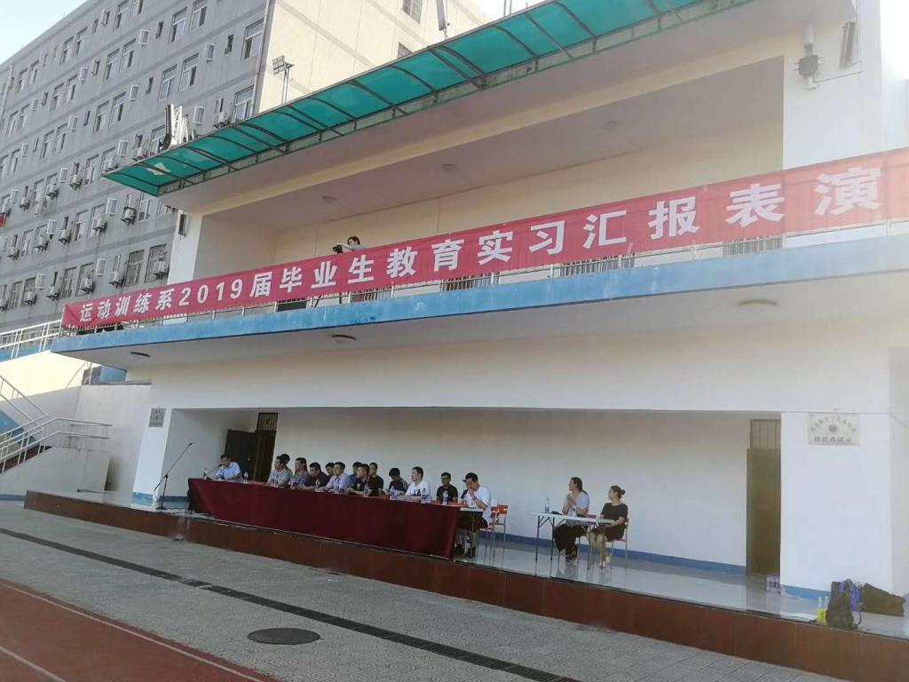 6月28日下午18点,运动训练系2015级在第一田径场举行了2019届毕业生实习汇报表演活动。运动训练系主任张葆欣、党总支书记张卫国、副主任武洛生、黄谦,2019届校内实习指导教师、2015级全体同学参加了此次活动。为了运动训练系2015级这次的汇报表演顺利举行,展现2015级全体同学在校内实习的风采,活动还邀请了两位体操教研室老师担任裁判长,本次活动由副主任武洛生主持。