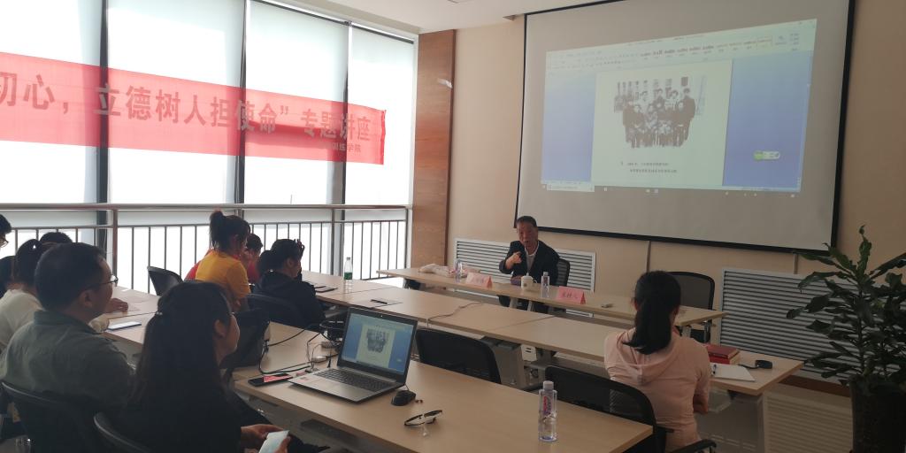 2019年9月25日下午2:30,运动训练学院在校2号行政楼六楼4号会议室,举行“不忘初心、牢记使命”主题教育之“忆前辈,守初心,立德树人担使命”专题讲座,讲座由学院党委书记王鑫主持,全院党政干部、辅导员、教师及部分学生代表参加了本次讲座。