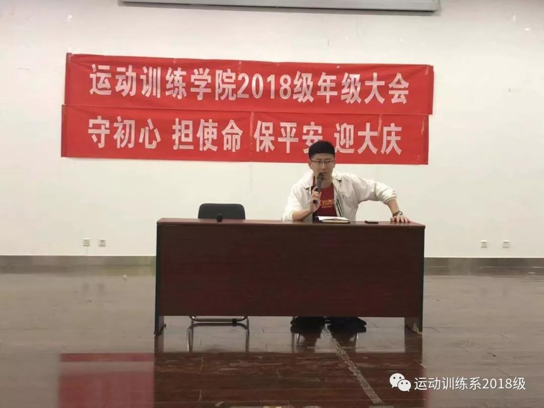 9月26日,运动训练学院2018级在五楼报告厅召开‘守初心,担使命,保平安,迎大庆’主题年级大会。18级全体辅导员与年级全体学生参加本次会议。