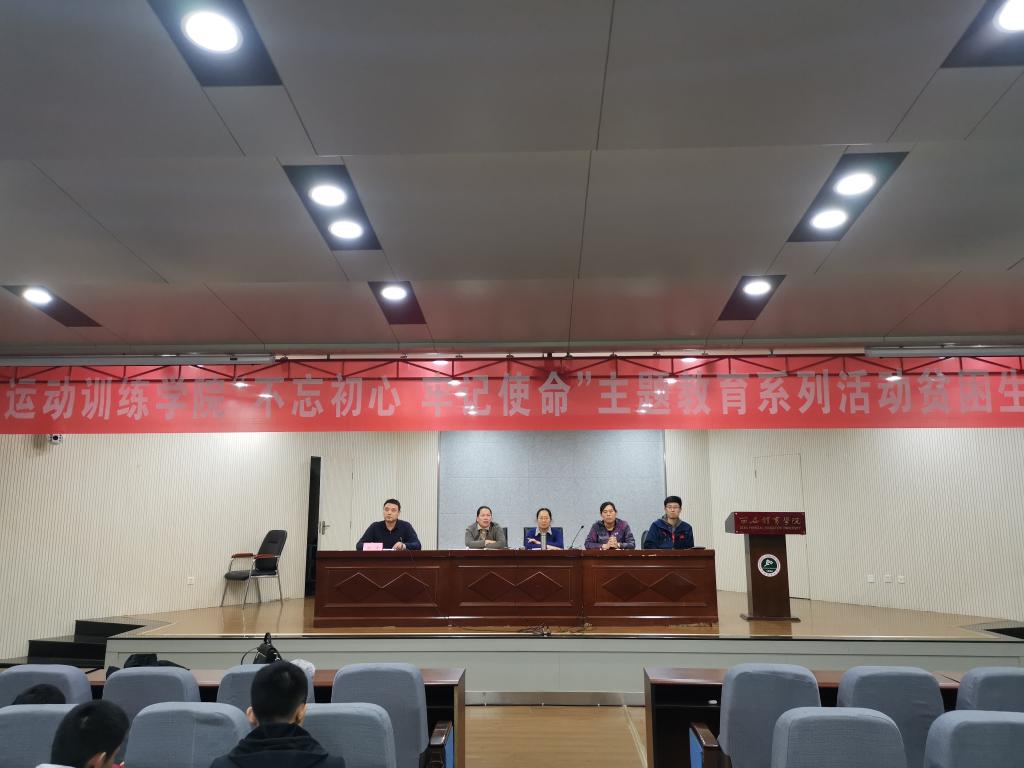 按照学院“不忘初心,牢记使命”主题教育相关工作安排,着力脱贫攻坚,进一步了解家庭经济困难学生的学习、生活、思想情况,宣传国家和学校的相关资助政策,运动训练学院于10月22日中午在教学楼一楼报告厅召开了“不忘初心,牢记使命”主题教育系列活动之家庭经济困难学生座谈会。院党委书记王鑫、副院长郑峰、党委副书记张佩莉、教学秘书郭仲娅及全体辅导员参加了会议。座谈会由副院长郑峰主持。
