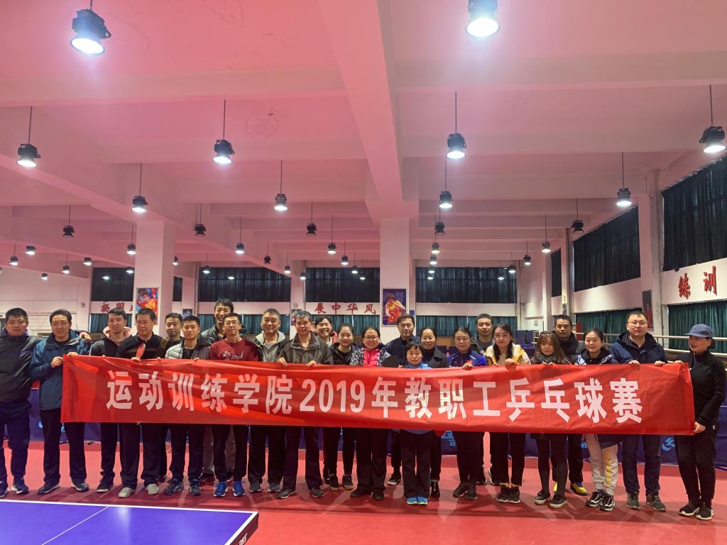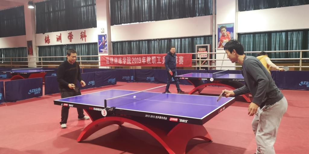 为推进运动训练学院主题教育活动向纵深开展,丰富我院教职工业余生活,增强集体凝聚力,加强教职工的沟通交流,运动训练学院于11月27日中午在综合训练馆3楼乒乓球馆举行交了2019年运动训练学院教职工乒乓球赛。学院党政领导、行政干部、各教研室专、兼职教师、各年级办辅导员积极参加了比赛。各位老师参与热情高涨,比赛精彩纷呈,老师们在赛场上挥动球拍,挥洒汗水,展现了精湛的球技。