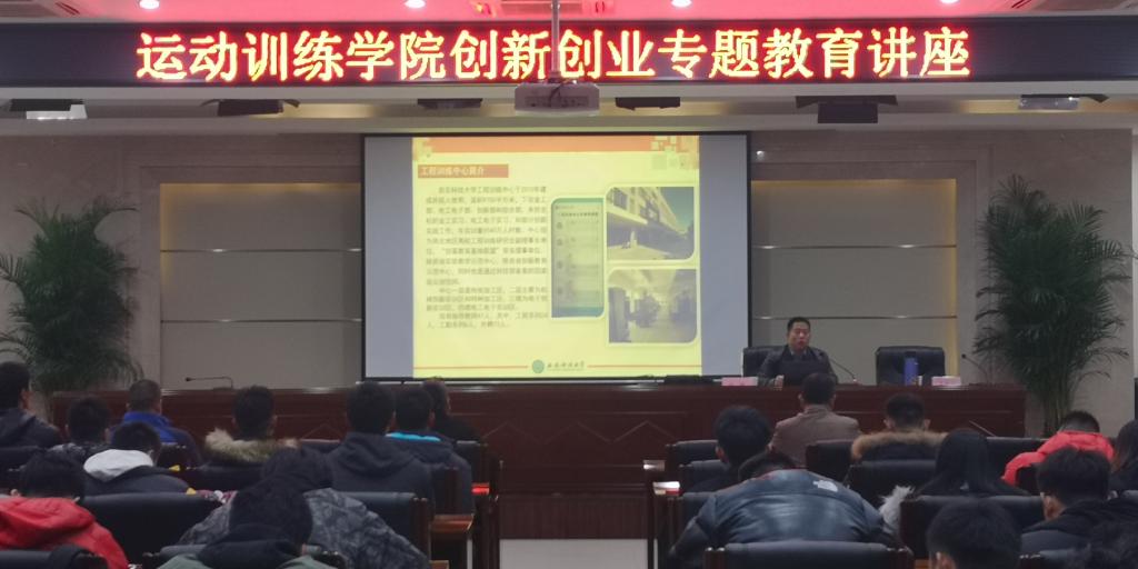 不忘育才的初心,担当育人的使命,坚持问题导向,为引导我院大学生了解创新创业知识,进一步激发学生的创业热情,培养学生创新精神和创业意识,提高学生创新创业能力, 11月20日晚7点运动训练学院在第二行政楼六楼报告厅举行创新创业教育主题讲座。西安科技大学工程训练中心主任兼实验室与设备管理处副处长、创新创业教育学院副院长、西北地区高校工程训练研究会秘书长、创客教育基地联盟秘书长刘琳应邀做题为《大学生创新教育——识变、应变、求变》的专题讲座。我院院长武洛生、党委书记王鑫、部分青年创新创业项目骨干指导教师和2017级、2018级部分学生代表聆听了此次讲座。讲座由武洛生主持。