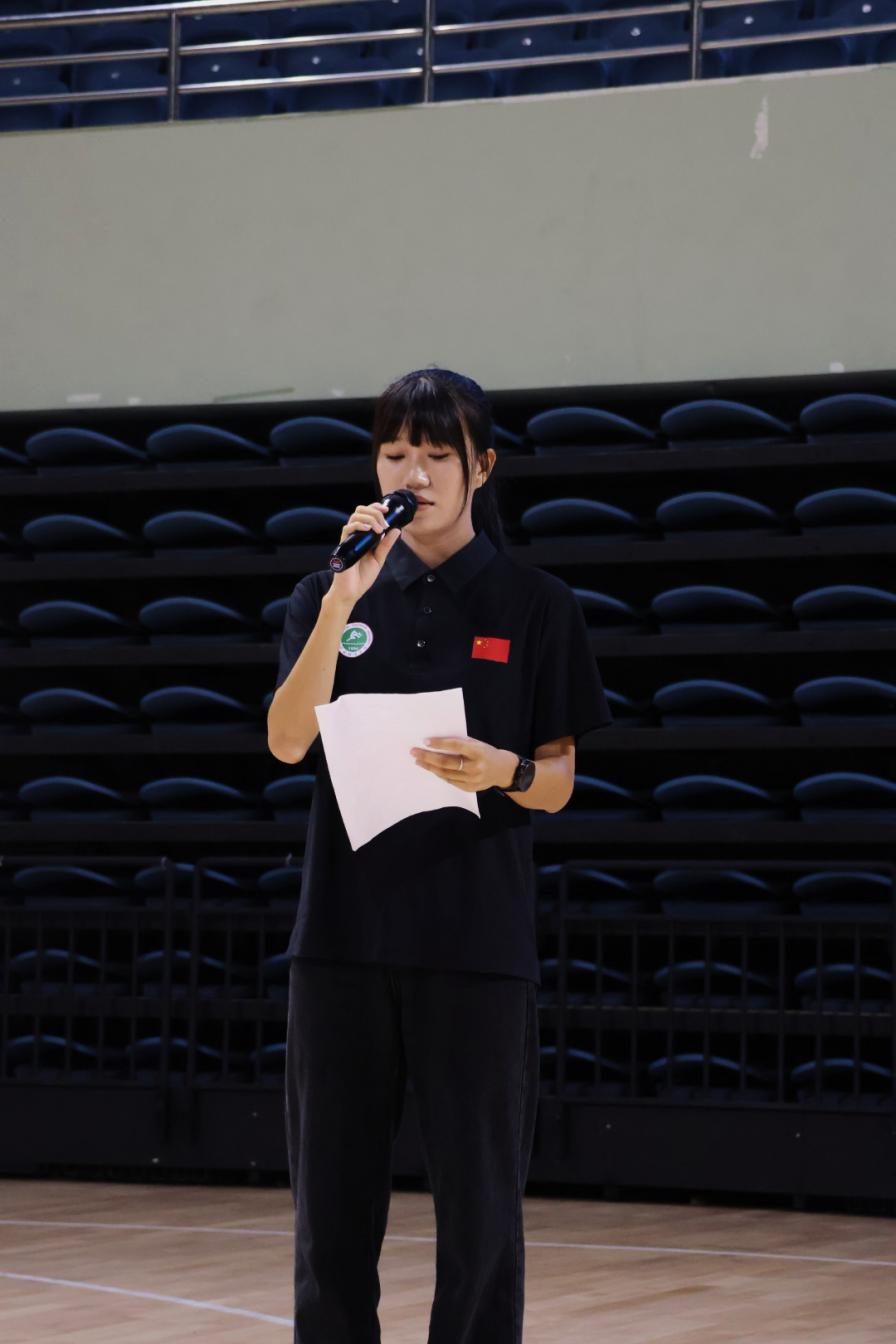 青年教师代表篮球教研室屈洋结合自身求学经历,勉励同学们要珍惜宝贵的大学时光,在青春的赛道上奋力奔跑,争取跑出超越自我的最好成绩。
