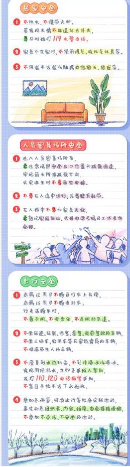 4、要科学使用煤气灶、电热毯、电暖器等设备,远离易燃易爆等危险品,房间保持通风良好,防止发生火灾、煤气中毒等事件发生。