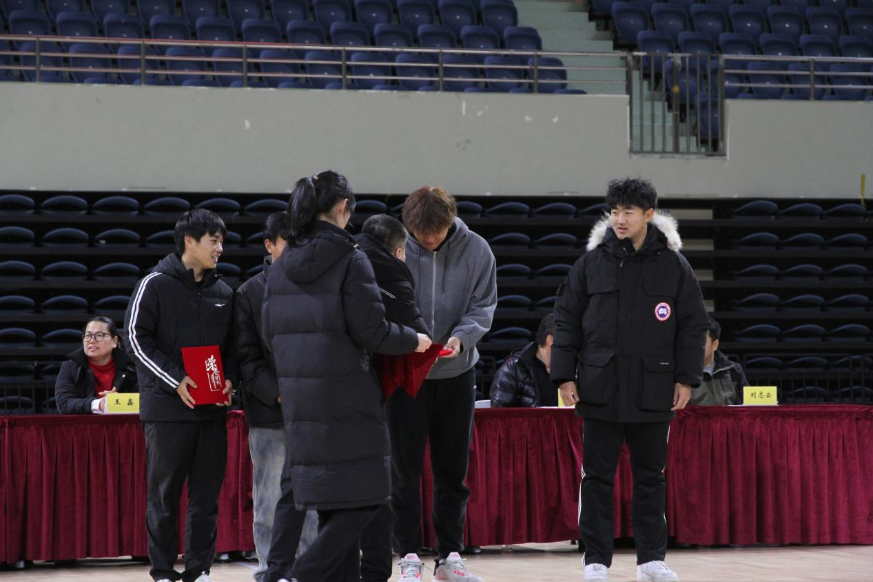 运动训练学院党委书记王鑫为运动训练2023级第一届竞技联赛“足球联赛”第一名获奖班级颁奖。