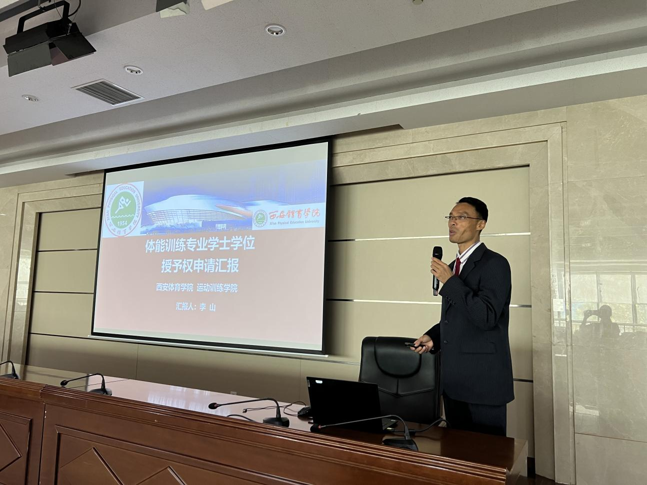体能训练专业负责人李山教授向各位专家评审介绍了我国体能训练专业建设与发展的历史,也指出了今年会体能训练专业建设的必要性。同时,李山教授也从今年会体能训练专业所具备的优秀的师资力量、高水平的场地设施以及在可视化教学模式下今年会体能训练专业发展的未来设想等七个方面向各位评审专家进行了介绍。