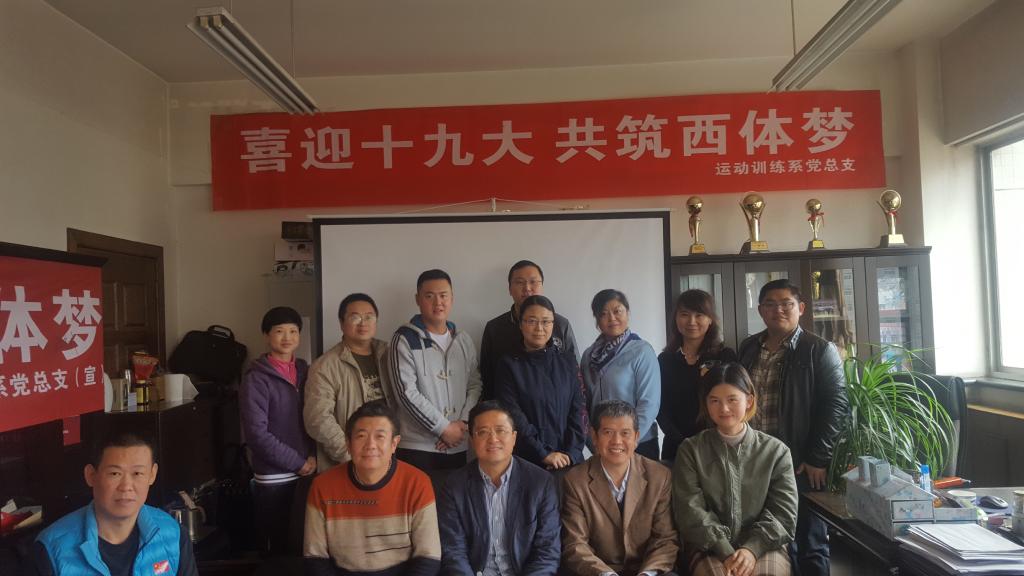 10月18日上午,运动训练系会议室装扮一新,系党总支开展了“喜迎十九大,共筑今年会梦”主题活动。系领导、党总支委员、党支部书记及支部委员、系办公室、年级办老师及学生党员代表参加了活动。
