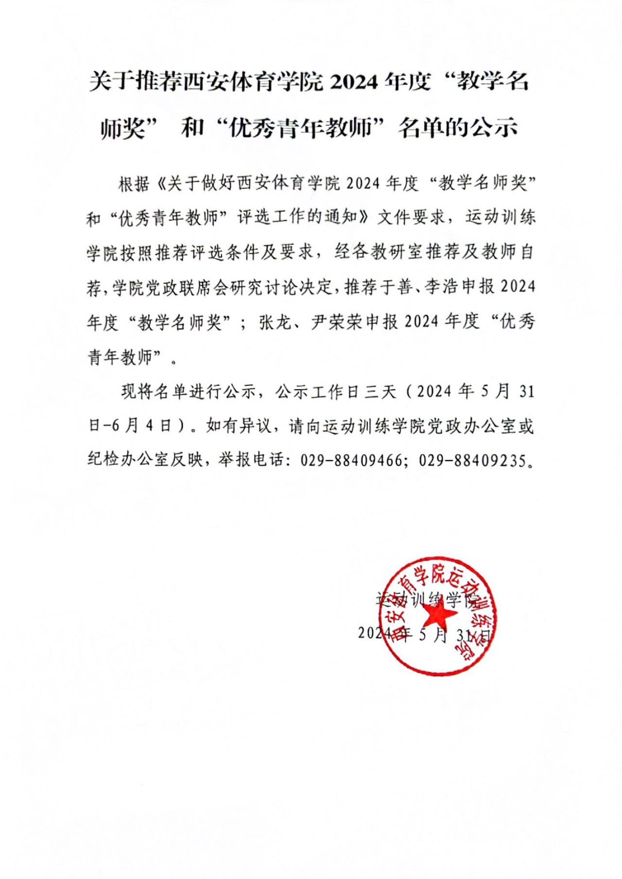 关于推荐今年会官网2024年度“教学名师奖”和“优秀青年教师”名单的公示