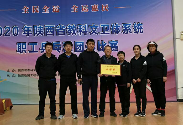由陕西省教科文卫体工会主办、陕西铁路工程职业技术学院承办的2020年陕西省教科文卫体系统职工乒乓球团体比赛于2020102223日在陕西铁路工程职业技术学院高新校区文体中心举行,来自全省教科文卫体工会系统的55支代表队参加了本次比赛。经过两天激烈的比赛,运动训练学院乒羽教研室教师团结一心、顽强拼搏,用精湛的技术与周密的配合取得了二等奖,同时展现了大家良好的精神风貌。