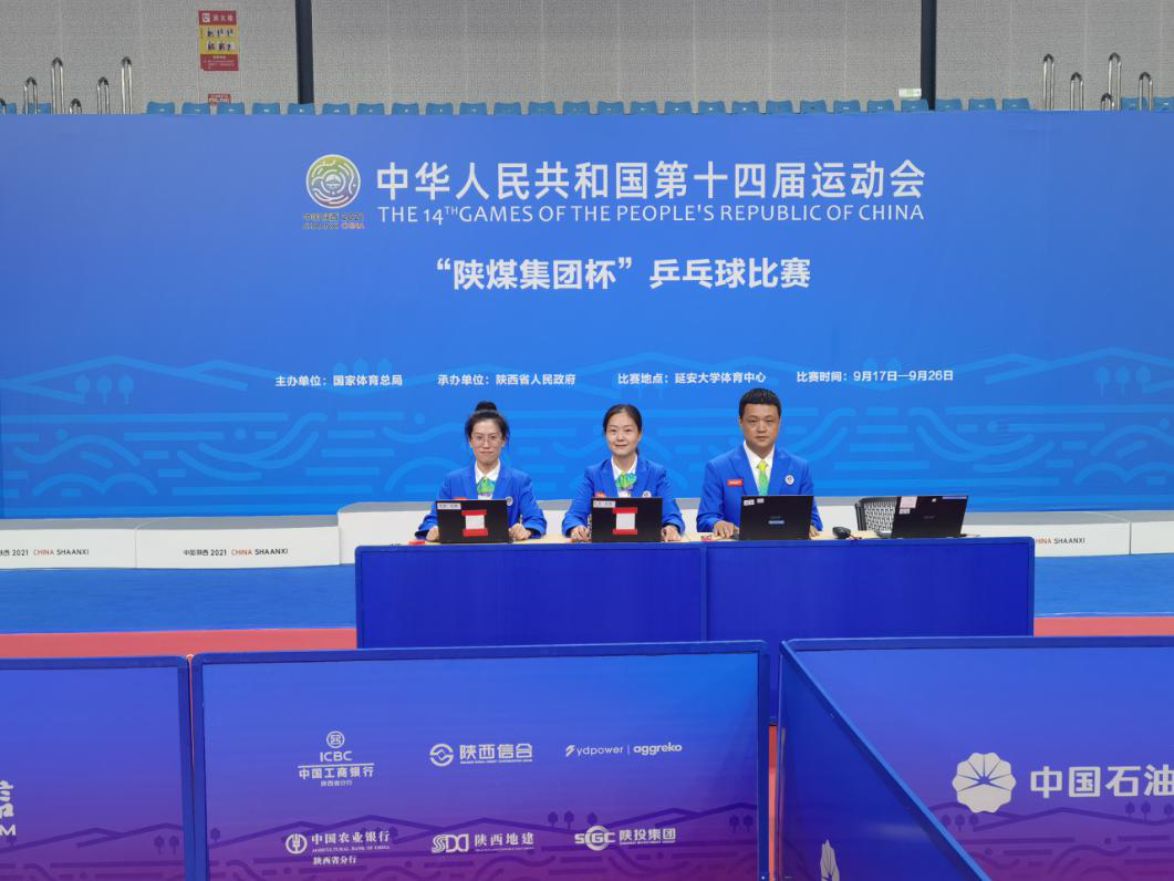 杜平(中间)执裁乒乓球比赛