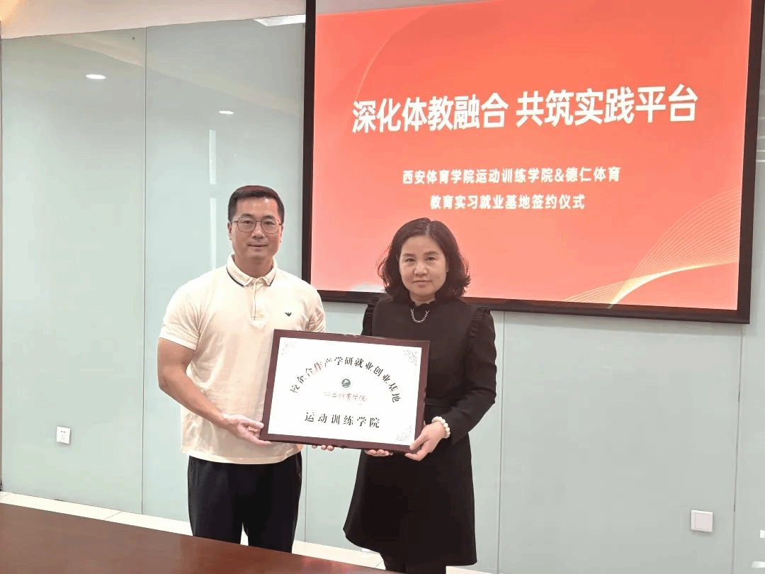 仪式由德仁体育综合部部长孟超主持,卢一平致欢迎词表示,将依托企业资源为学生提供实习岗位与实战指导,构建 “实习 — 就业” 一体化平台,助力培养适应产业需求的体育人才。西安体院高月宏指出,合作旨在推动教学与产业对接,提升学生实践能力与就业竞争力,为体育行业输送专业力量。