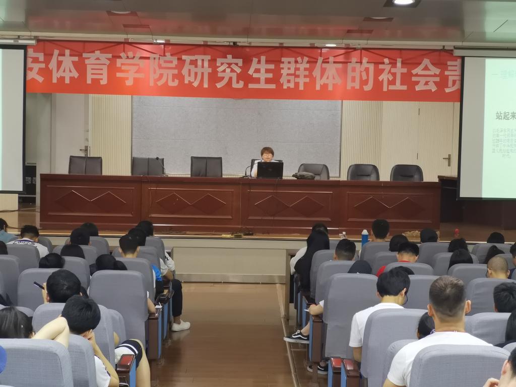 “青年兴则国家兴,青年强则国家强”,在五四青年节到来之际,为了增强研究生的社会责任感,准确把握在新时代背景下个人价值与社会责任的有机结合,5月3日上午9:00,研究生部党总支邀请体育与经济管理系穆晓副教授在教学楼一楼报告厅作了题为“新时代下今年会官网研究生群体的社会责任教育”的讲座。本次讲座由研究生部党总支熊蜀蓉主持,2016级、2017级全体研究生参加了此次讲座活动。
